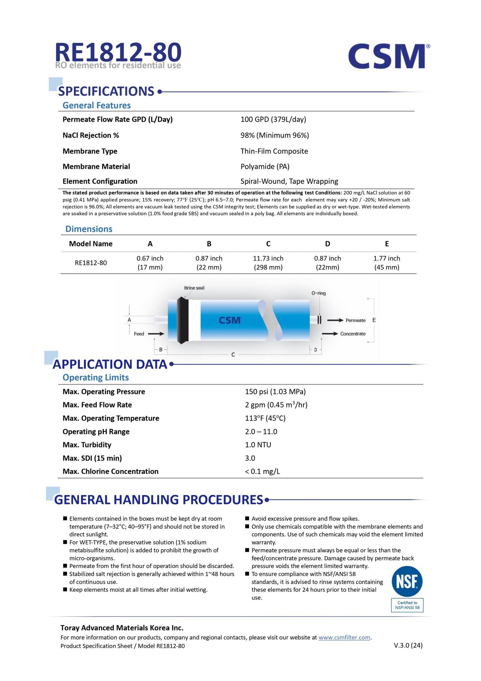 • Material: Polyamide Thin-Film Composite