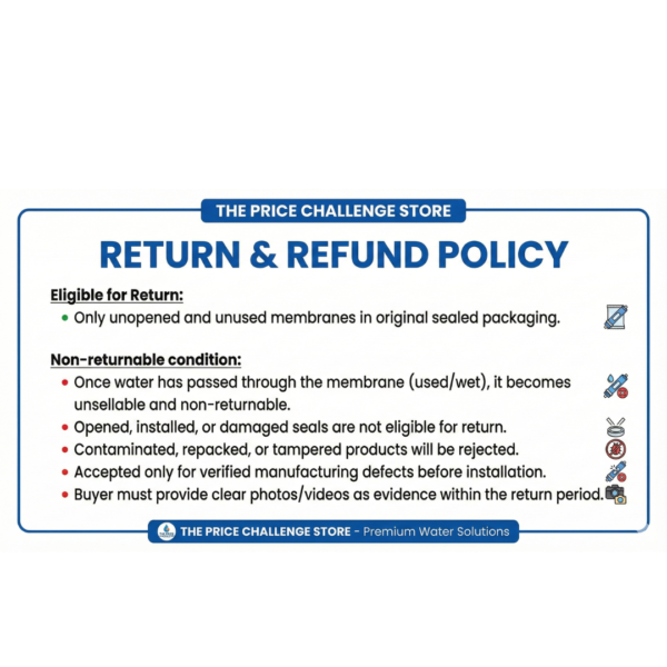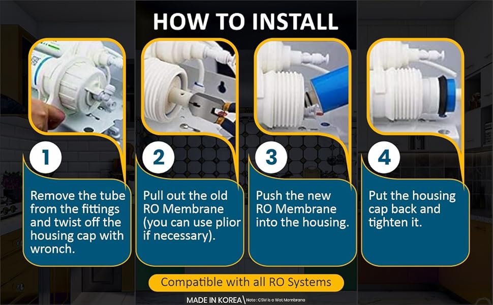 Installation Tip: Always flush the first 10-15 liters of water after installing a new membrane to remove the preservative solution.